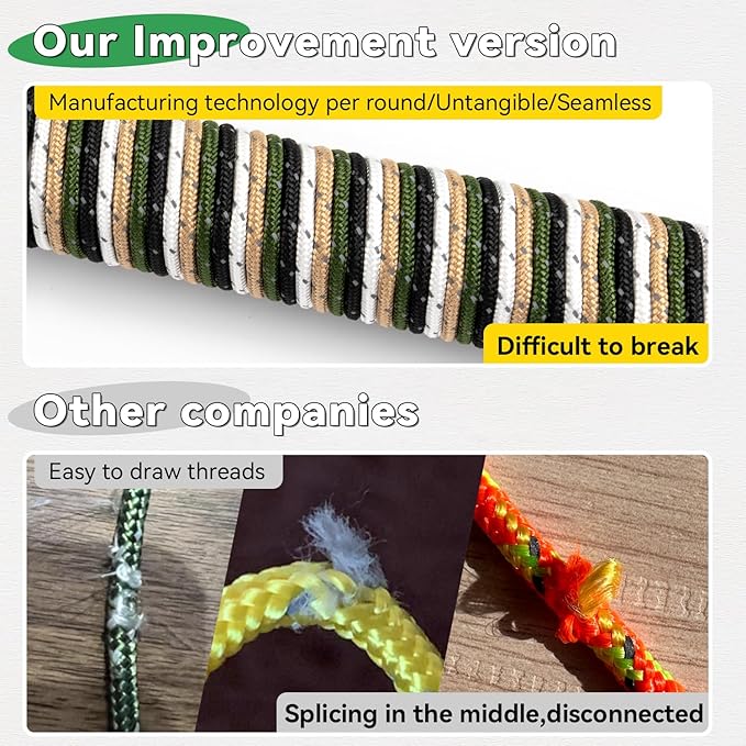 - 【High quality】Made of high-strength 5 nylon cores.The rope ends on both sides are wrapped by heat shrink tubes to prevent stranding.Wear resistance and aging resistance,long usage time