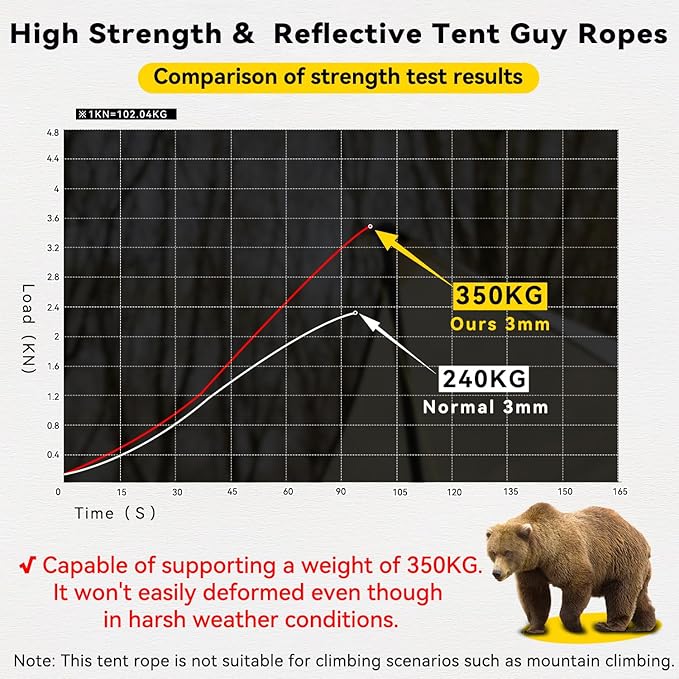 - 【Strong Reflective】Each guide rope 13 feet (4M) long,has a large number of reflective wires,can provide greater visibility at night,prevent tripping over the tent