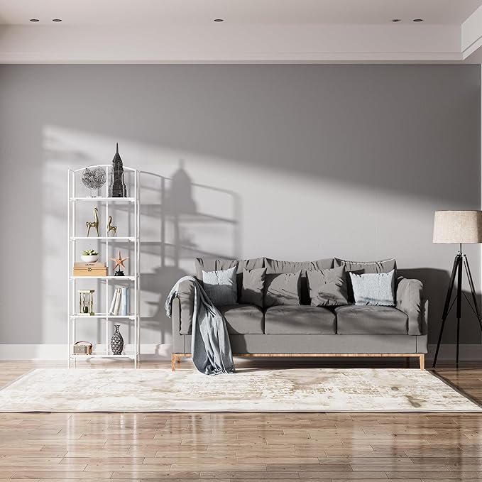 Crofy No Assembly Folding Bookshelf for Living Room, 5 Tier White Collapsible Book Shelf for Home Office, Portable Bookcase Storage Organizer