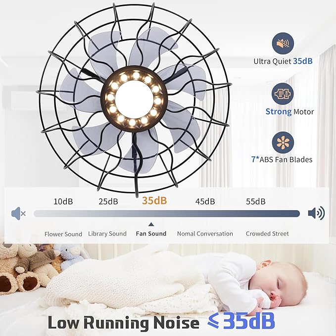- 【Memory Function】Turn on the light and wait 30 seconds, all settings will be memorized. When next time turned on, the color and brightness last turned off will remain unchanged.and Reversible mode; 6 fan speed levels; Nightlight mode; 1/2H Timing function