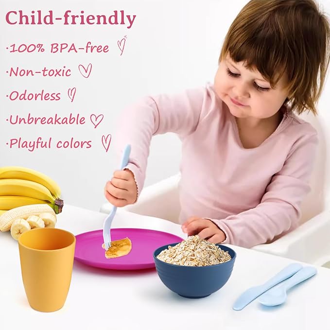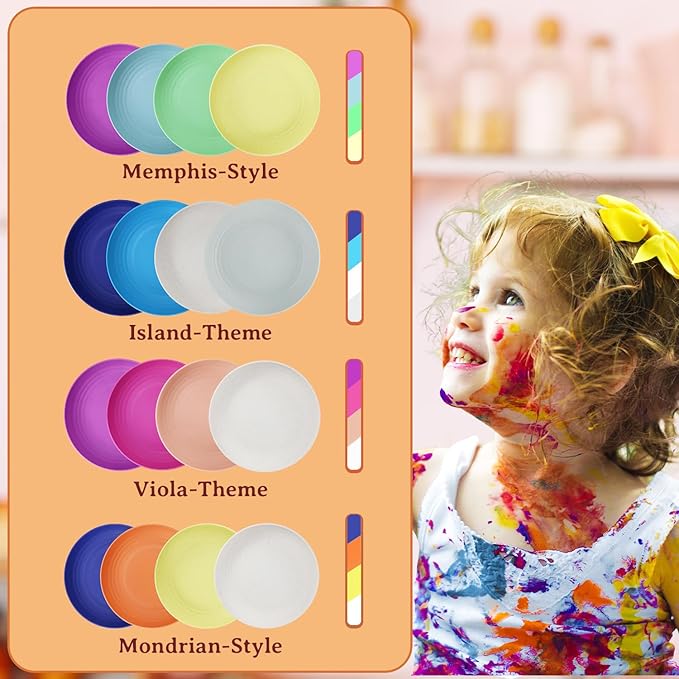 - π¨[ππ«ππ’π¬ππ’π πππ¬π’π π§ & ππ§ππ‘ππ§ππ’π§π πππ₯ππππ] The small wheat straw plates feature the colorful Memphis design, adding a lively and artistic feel to the room. The bright colors not only look great but also help grab children's attention and encourage family interaction, making meals more fun.