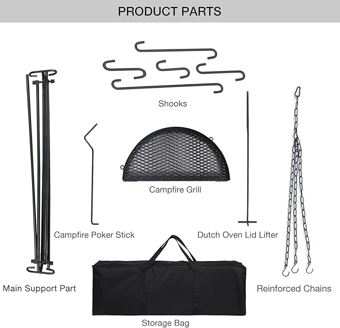- Versatile Cooking Solution: The Swing Grill Campfire Cooking is designed as a multifunctional BBQ Grill Swing Cooking Stand, perfect for outdoor cooking needs. This equipment allows you to skillfully prepare food using Dutch ovens, frying pans, and kettles over an open flame, enhancing your camping experience.
