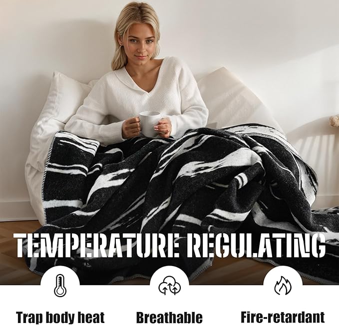 - PERFECT EDGE TREATMENT - Unlike other blankets, our heavy wool blanket features double-sided jacquard weaving technique, offering a refined and stylish appearance. Its sub busbar seam technology prevents edge wear and tear. Its sub busbar seam technology prevents edge wear and tear. This ensures high quality and a long lifespan, making it look at home in the woods or on the couch. Wool is a natural flame retardant material.