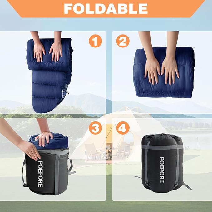 - Convenient Portability: The sleeping bag comes with a convenient storage bag, making it easy to roll up and stow away for transport and storage. These features make the POEPORE sleeping bag an ideal choice for enjoying comfort, warmth, and convenience during outdoor adventures, whether it's camping in the wilderness or relaxing indoors.