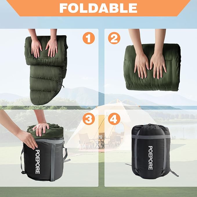 - Convenient Portability: The sleeping bag comes with a convenient storage bag, making it easy to roll up and stow away for transport and storage. These features make the POEPORE sleeping bag an ideal choice for enjoying comfort, warmth, and convenience during outdoor adventures, whether it's camping in the wilderness or relaxing indoors.