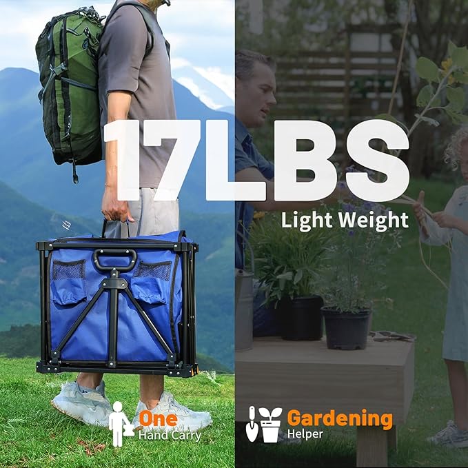 - High-Capacity: Made of a heavy-duty iron frame, the structure welded is absolutely solid and durable. The fabric material is made of 600D fabric and PVC coating to be waterproof and durable. Size: 35.4"x21.6"x19.6". Folding Dimension: 30”x20”x7”. The collapsible wagons and carts' load capacity is up to 220lbs, which can be effectively transported with a high load.