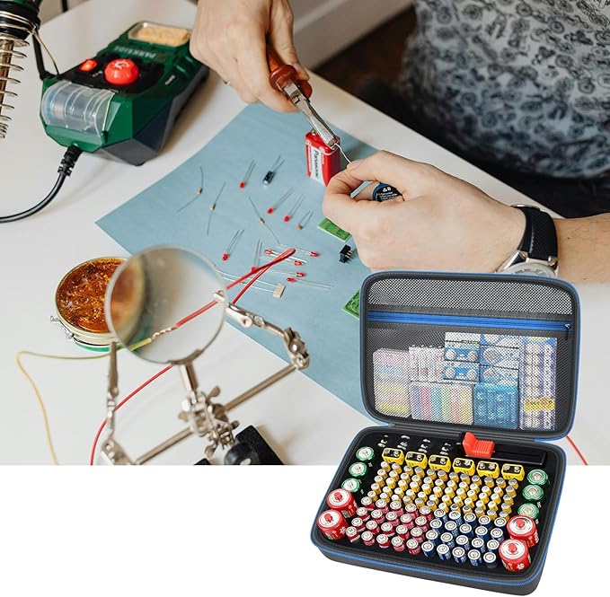 - High-Capacity Battery Holder with Mesh Pocket: The case offers ample space for a diverse battery collection, including room for a 23A 12-volt battery or other large batteries in the mesh pocket, providing a one-stop battery storage solution.