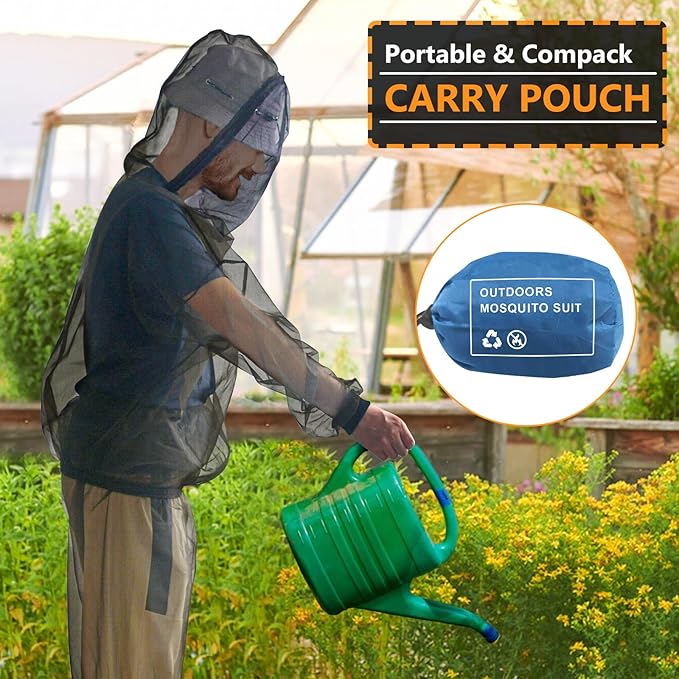 - NATURAL WAY: The mosquito-net clothing with portable carrybag serves as a natural protection in an eco-friendly way. Not treated with chemicals. Non-toxic and recyclable. There is proper air circulation. Perfect for hiking, camping, fishing, traveling, and so on, to keep you safe anytime, without having to spray yourself down with smelly, heavy chemicals.