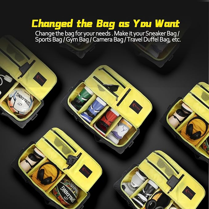 - WIDE USAGE: This fashion travel duffle bag is not only used as a shoe suitcase for travel. Adjusting the 3 dividers inside, the bag can be customized to fit any storage needs. It is perfect for traveling, outdoor activities, baseball, football, basketball, and clothing storage. This large travel duffle bag can be transformed into a Sneaker Bag / Travel Duffel Bag / Gym Bag / Sports Bag / Boxing Bag / Athletic Bag.