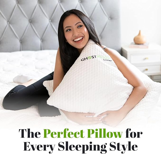- Perfect for all Sleepers: The adjustable loft of the GhostPillow Shredded caters to all types of sleepers looking for a cooling pillow. Standard size is perfect for stomach, back, side, or combo sleeping, as this memory foam pillow’s cooling feature adapts to your needs.