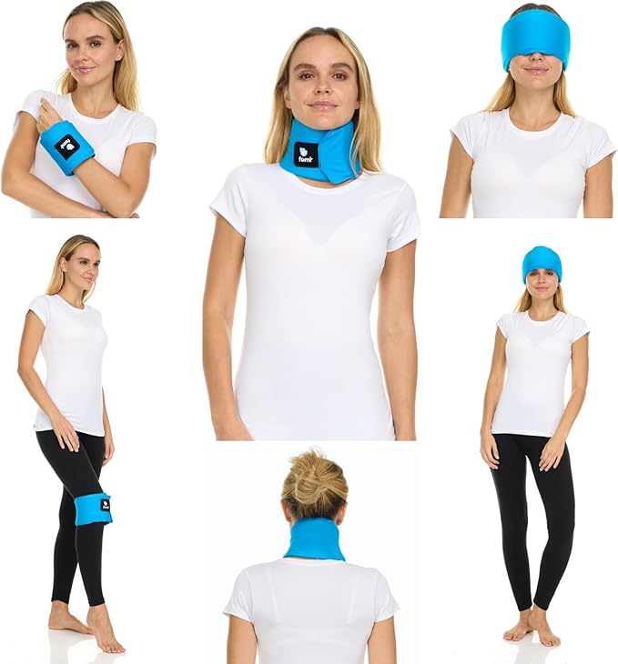 FOMI Premium Hot Cold Multi Function Solid Gel Ice Pack | Neck, Forehead, Eye, Wrist, Knee, Shin Cool Compress | Adjustable Wrap for Stiff Neck, Migraine, Headache, Meniscus, Carpel Tunnel Pain Relief