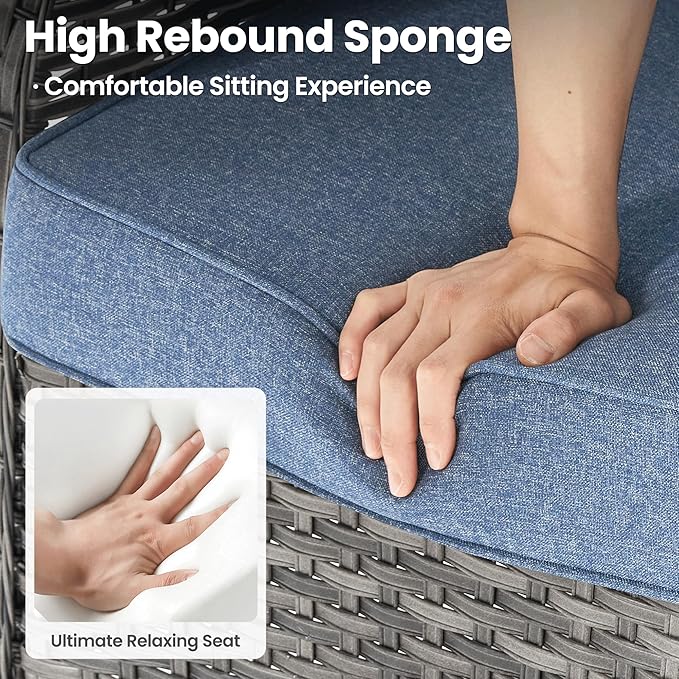 - Thickened Outdoor Cushion: 3.54 inches upgraded high-density and high resilience sponge cushions for comfortable sitting and support. Breathable fabric is water-resistant and and the zipper design is removable and washable