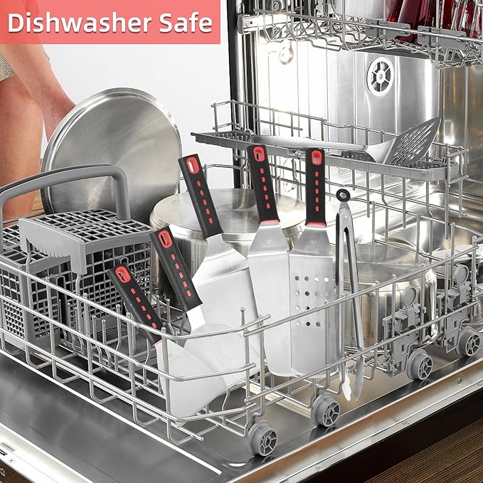 - 【PERFECT GIFT SET】 Griddle accessories kit is a great gift for men or anyone who likes to grill. The park, camping, backyard are the best places for barbecue and grilling. Perfect size for picnics and easy to store in the trunk or kitchen. This professional griddle tools will meet most cooking needs, ideal for Outdoor BBQ, Teppanyaki.