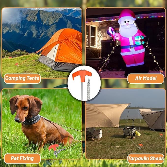 - Multifunctional Use: Our high quality camping stakes are not only suitable for fixing tents, canopies, tarpaulins, rope racks, fences, awnings and beach umbrellas, but also for fixing children's trampolines, supporting and fixing plants and fixing large Christmas balloons, it is an essential and multifunctional prop in your life.