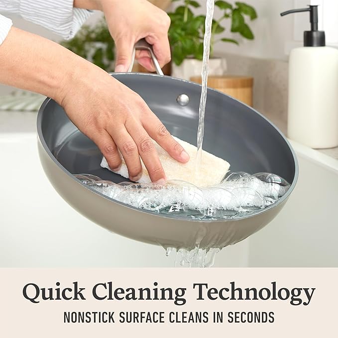 - Metal Utensil-Safe: Cooking from scratch deserves scratch-free cookware, so our ceramic pans have scratch-resistant interiors.
