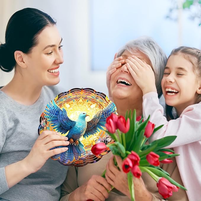 Dove Stained Glass Wind Spinner, Memorial Wind Spinner for Yard and Garden, Unique Gift, 3D Hanging Outdoor