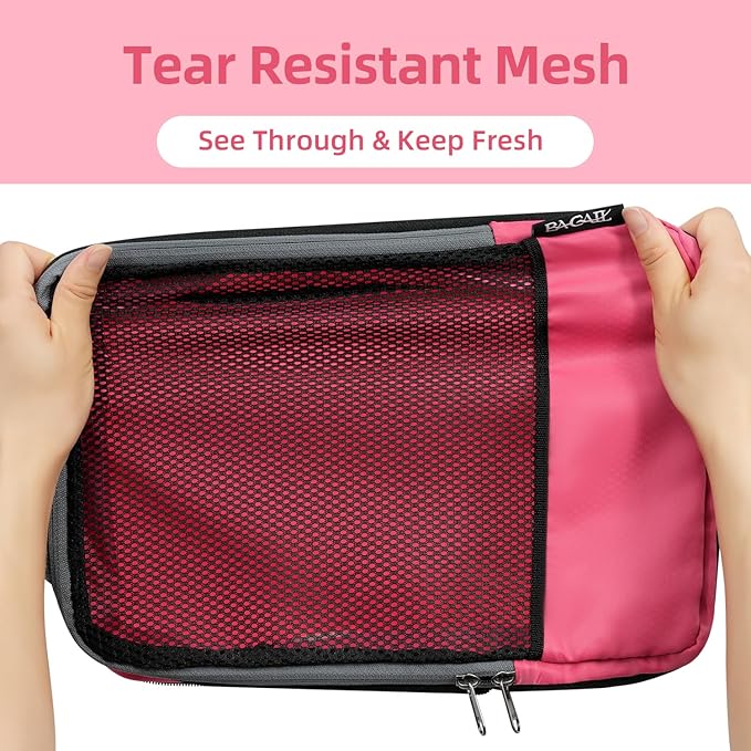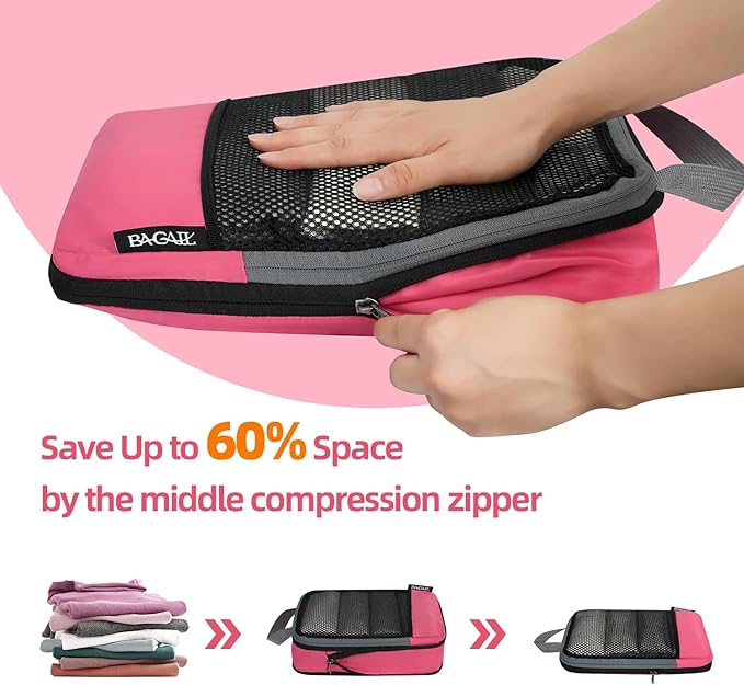 BAGAIL 4 Set/6 Set/8 Set Compression Packing Cubes Travel Accessories Expandable Packing Organizers (Half Mesh, 6-Coral)
