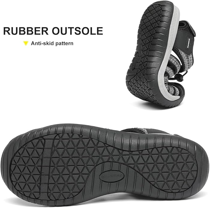 - Anti-slip: The high-quality rubber outsole combined with the pattern makes it more slip resistant and improves walking safety. A closed toe cap protecting your toes from collision.