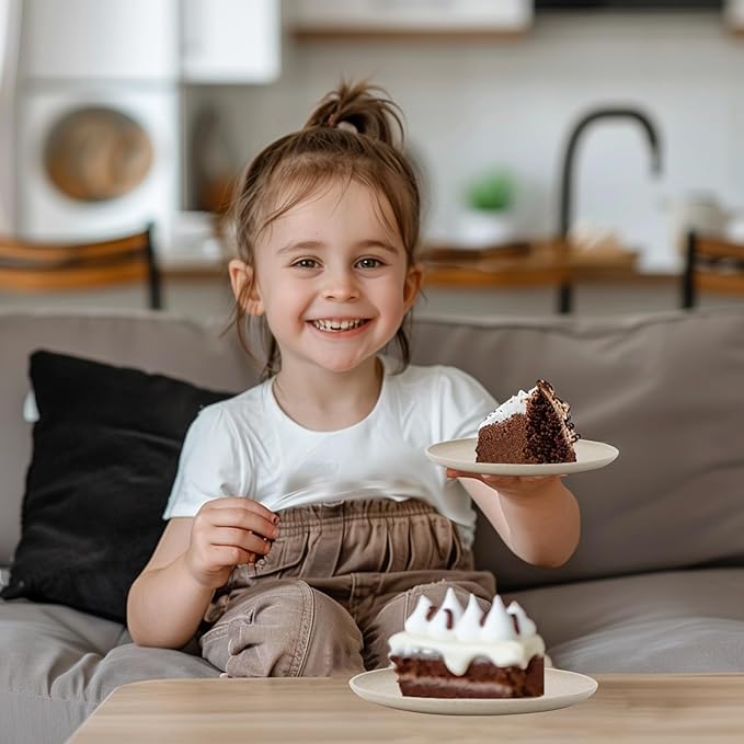 - LIGHTWEIGHT & UNBREAKABLE: The beige dessert plate is very light and unbreakable. Because of its sturdiness, you don't have to worry about it possibly breaking if dropped, making it a good replacement for traditional ceramics and plastic plates
