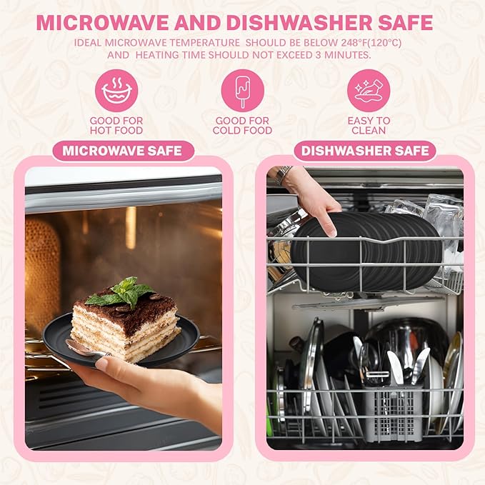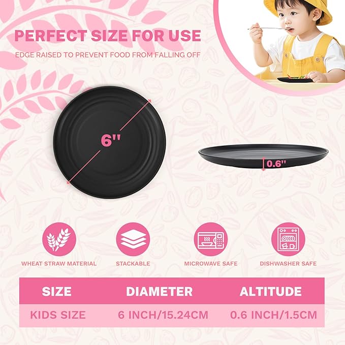 - VERSATILE & REUSABLE: Homienly's balck small wheat straw plates are ideal for parties, picnics, camping, home, school, office, travel, or everyday use. Great for families with kids and the elderly.