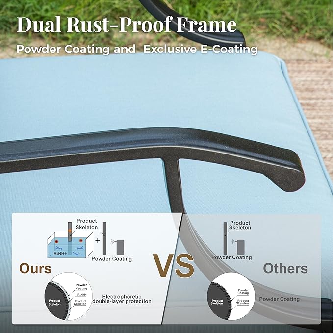 - 【RELIABLE ALL-WEATHER METAL CONSTRUCTION】Built from durable metal with E-COATING and POWDER-COATING finish, ensuring resistance to all weather conditions, rust-proof qualities, and easy maintenance. The sturdy wrought iron frame can withstand various weather conditions, with the single chairs supporting up to 350 lbs and the 3-seater sofa accommodating up to 900 lbs, promising long-lasting reliability and durability.