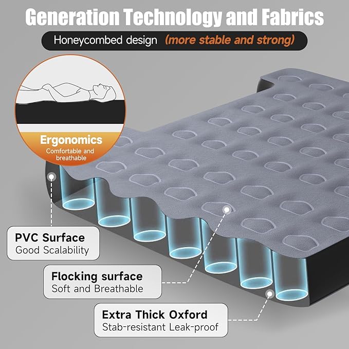 - Multi-Layer Air Column Design : Constructed with a unique multi-layer air column structure, say no leakage, this inflatable truck bed air mattress provides superior support and stability, allowing for a comfortable sleeping experience even on uneven surfaces.