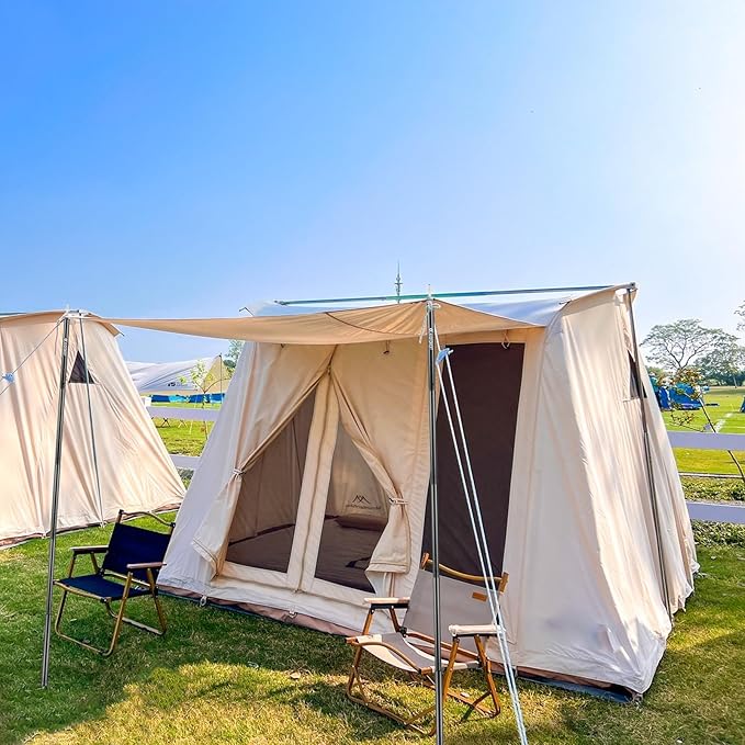 - 【MORE HUMANIZED DESIGN】 The steel stakes on the top of the tarp poles can be inserted into the tarp holes, so that the tarp and tent poles can realize a tighter connection.