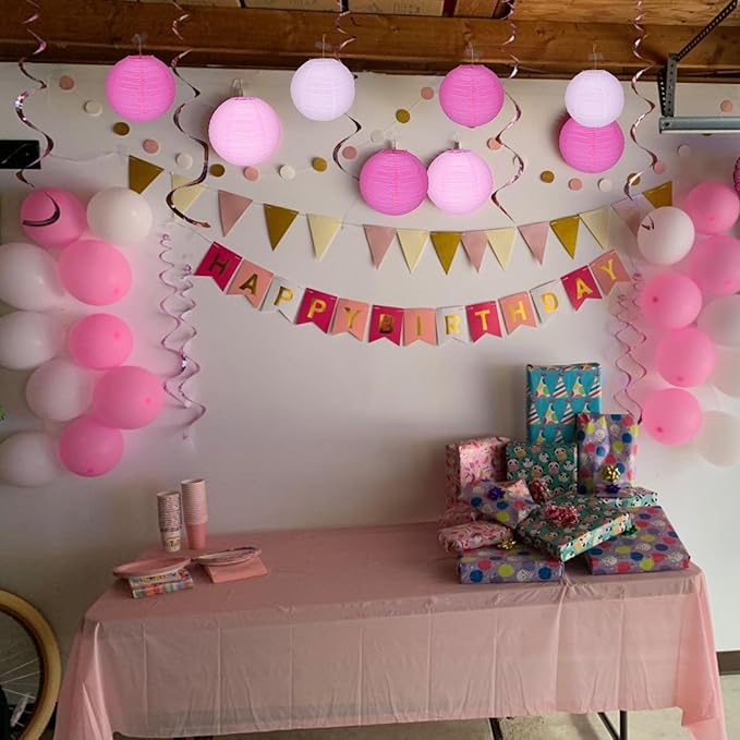 12Pcs Round Paper Lanterns Assorted Sizes (6" 8" 10" 12") for Home Decor, Restaurant, Church, Wedding, Birthday Party Decorations, Hanging Chinese Japanese Paper Lantern Lamps (Pink Series)