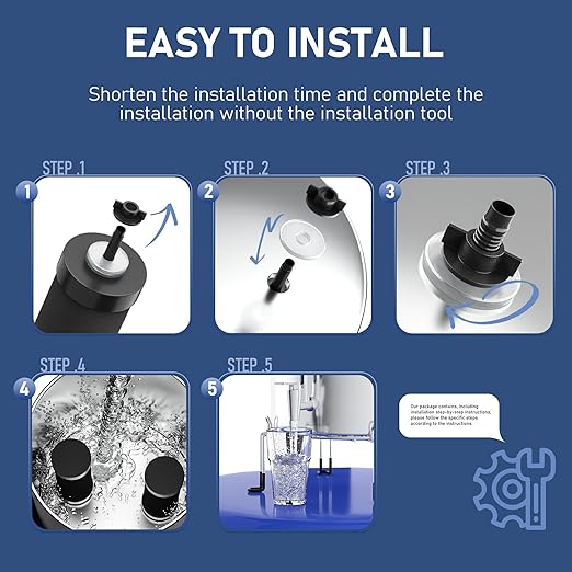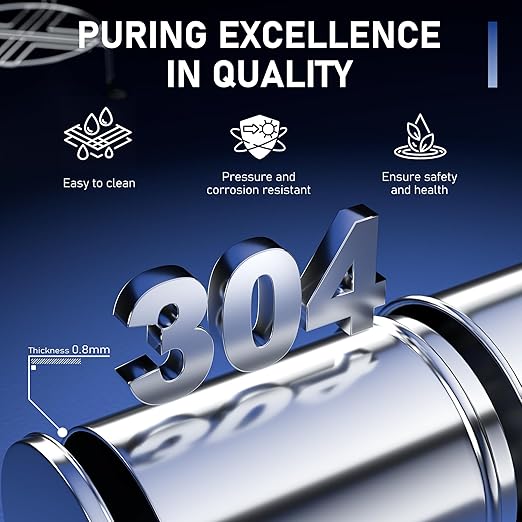- SECURE AND EXQUISIT CONFIGURATION:The use of 304 food-grade stainless steel guarantees safety, longevity, and an aesthetically pleasing design.The metallic water level spigot included in the system fits the chamber perfectly without any leaks.We have equipped you with a removable anti-slip bracket to guarantee its stability.We have also prepared the basic installation tools for you, so you do not need to buy additional