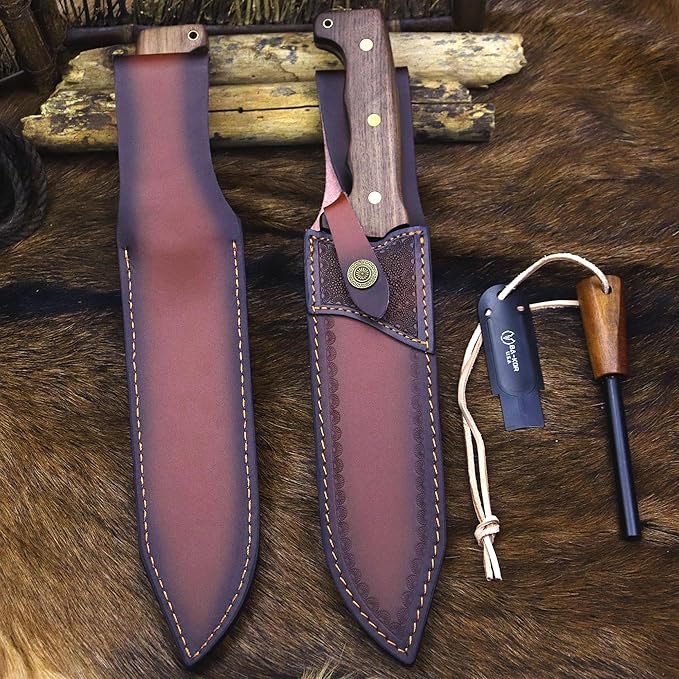 - 《High quality steel》: DC53 steel has a high hardness, with a Rockwell hardness of up to 57-61HRC, allowing hunting knives to maintain sharp blades. Good corrosion resistance: Steel contains elements such as chromium and molybdenum, which have good corrosion resistance and are not easy to rust. Strong toughness and less prone to breakage during use. Good edge retention