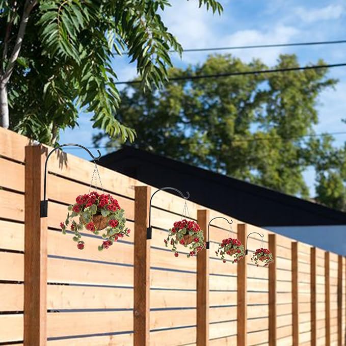 - 4 PACK HOOKS-Our Deck Hook set includes 4 Deck Rail Hooks, you can use it for handling bird feeders,humming bird feeder ,wind chimes,heavy hanging plant/flower baskets,halloween decoration, thanksgiving decoration, christmas decoration etc.It is very sturdy throughout the seasons.