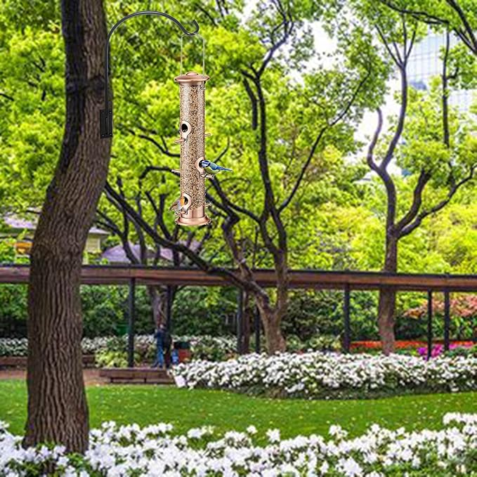 - HEAVY DUTY AND HIGH QUALITY MATERIAL-Our plant bird feeder Hook adopt a minimalist design style, with a high quality metal wrought iron manufacturing process, protecting from rust and making them last longer! Powder coated rust proof and weather proof metal construction create a hanger meant to last.
