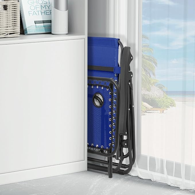 MoNiBloom Oversized Lounge Beach Chairs for Outside, 29" XL Zero Gravity Camping Chairs with Side Table, Pillow and Tray, 330lbs Capacity, Blue