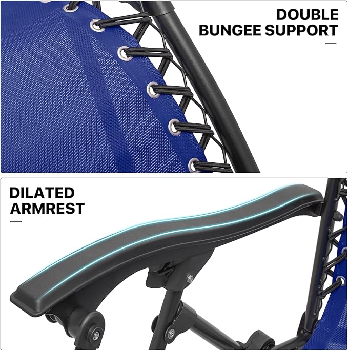 - Superior Quality Materials - Crafted with high-quality textile mesh and a robust iron frame, this zero gravity chair ensures long-lasting support and comfort. The strong double bungee rope and breathable fabric make it ideal for summer relaxation.