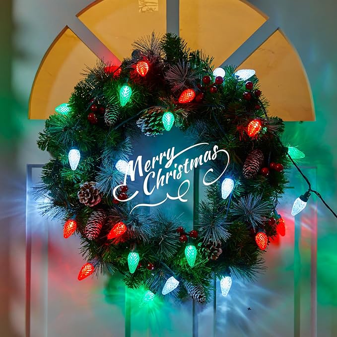 - Waterproof Shatterproof Red Green and Pure White Christmas Lights: Designed with impact-resistant, shatterproof C9 LED bulbs that withstand drops; Christmas outdoor lights are IP44 waterproof, and can withstand extreme temperatures, rain, wind, and damp climates, ensuring durability and safety, suitable for both indoor and outdoor use