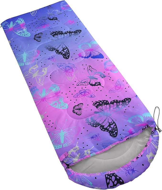 - Applicable For 3 Seasons: Our butterflies sleeping bag can be used temperatures ranging from 32°F-77°F Except for the cold winter,sleeping bag have weatherproof to prevent from dampness,Size is 31 x 90 inches