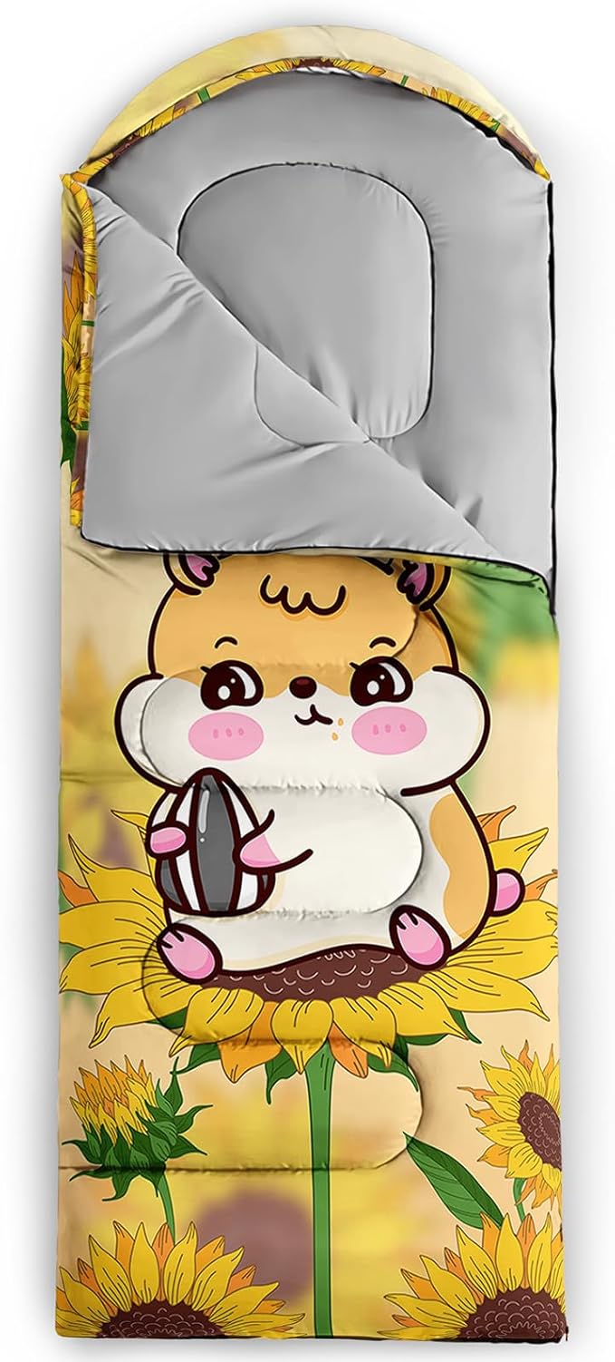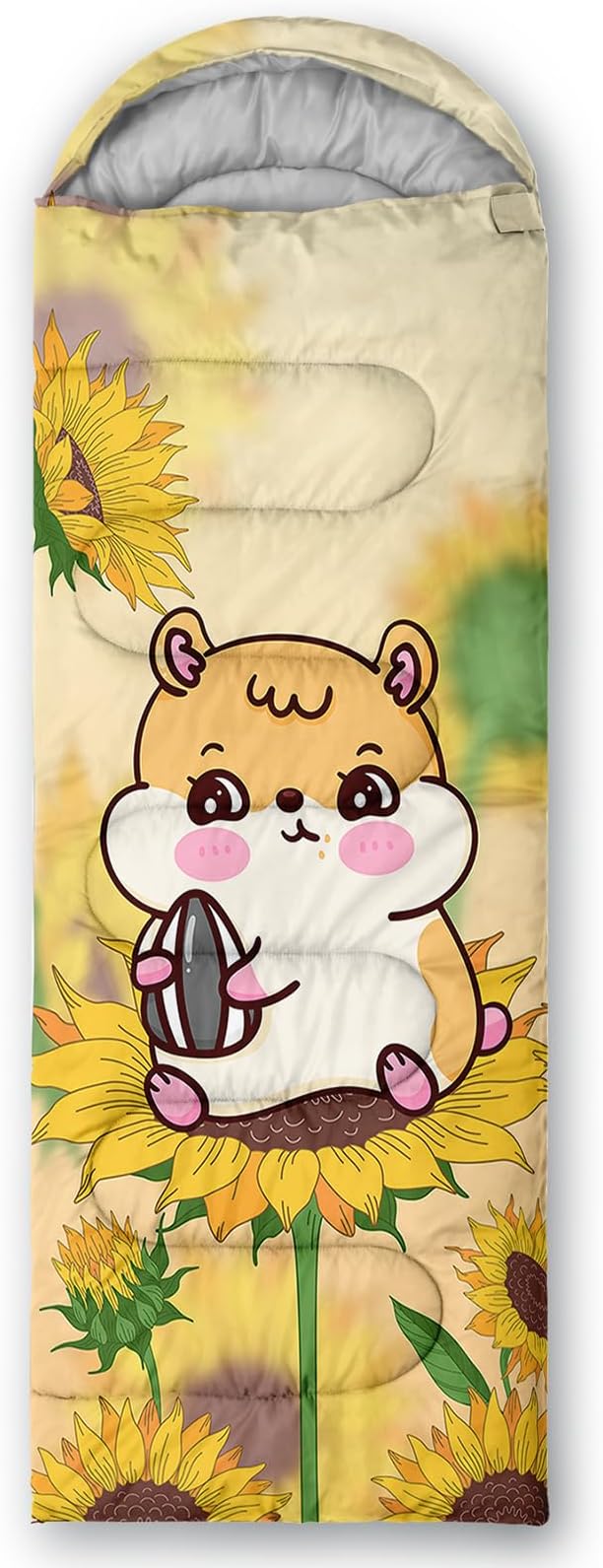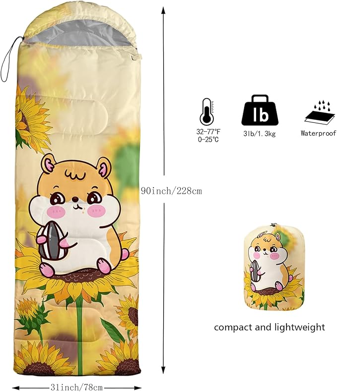 - Applicable For 3 Seasons: Our cartoon hamster sleeping bag can be used temperatures ranging from 32°F-77°F Except for the cold winter,sleeping bag have weatherproof to prevent from dampness,Size is 31 x 90 inches