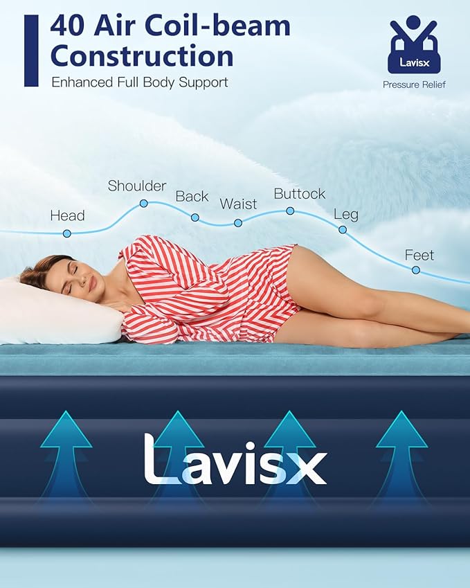 - Advanced Support System - Featuring an innovative coil structure, our inflatable mattress delivers superior support and comfort. The carefully designed 40-coil system, allowing you to sleep more naturally and wake up refreshed.