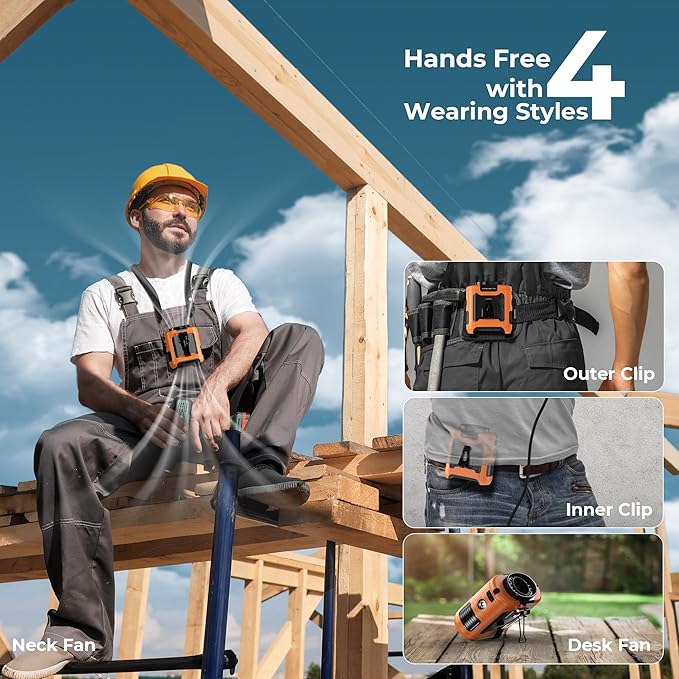 - Silicone Cover, Anti-Slip & Anti-Drop: Designed for various outdoor scenarios, mini waist fan is suitable for occupations like workers and farmers. Equipped with a high-quality silicone protective cover to prevent damage in case of drops. The upgraded manganese steel clamp provides a stronger grip, ideal for wearing at Disneyland or gardening