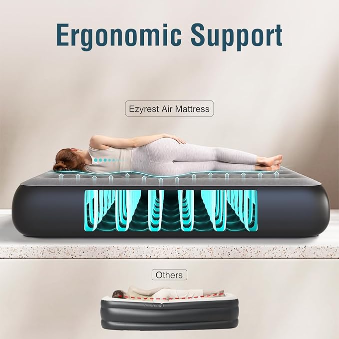 - Outstanding Safety and Comfort: Ezyrest air mattress 13" are made from an upgraded PVC material formula for better abrasion resistance and ductility. The unique Ring Inflatable Structure provides stability, reduces noise and prevents tipping or slipping. This supports our body and protects our spine when we lie down, and make sure for your ideal comfort