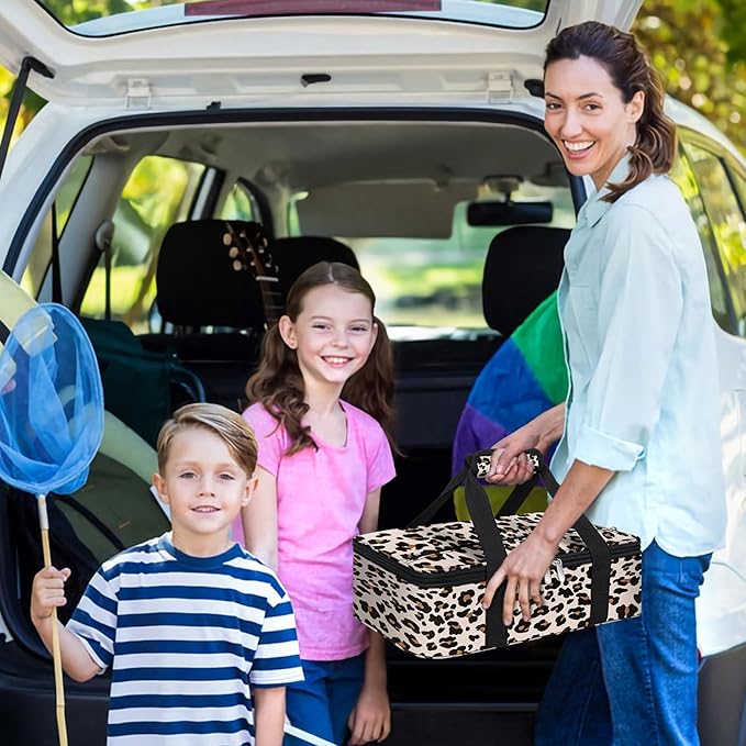 Insulated Casserole Carrier, Portable Casserole Carrier for Hot or Cold Food Lunch Tote Warmer or Cooler Bag, Lasagna Lunch Bag for Potluck Parties- Fits 9" x 13" Baking Dish-Leopard