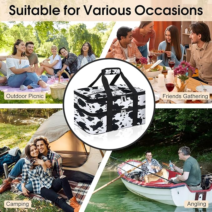 Double Insulated Casserole Carrier, Portable Casserole Carrier for Hot or Cold Food Lunch Tote Warmer or Cooler Bag, Lasagna Lunch Bag for Potluck Parties- Fits 9" x 13" Baking Dish-Cow Pattern