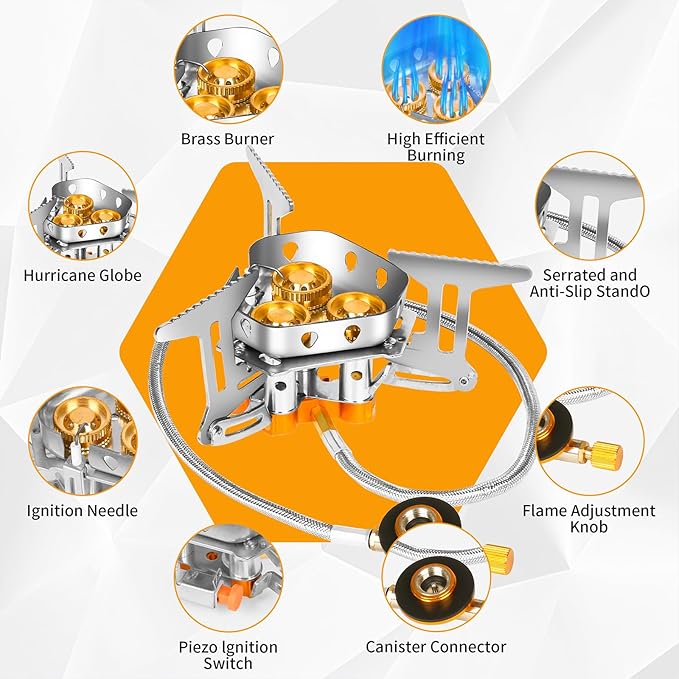- Multi-Gas Compatibility: Compatible with isobutane, butane, and 1 lb. propane tanks, this stove offers unmatched versatility. The extended 60cm hose ensures safer and more convenient operation compared to standard 30cm hoses.