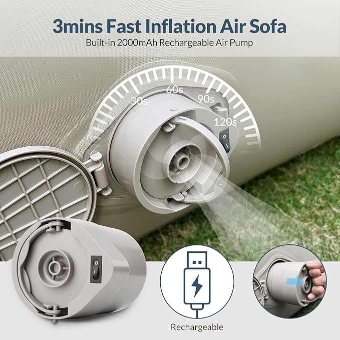 - Quickly inflation/deflation: The sofa bed couch will be inflated in 3mins, 2-in-1 valve has extra-wide openings for fast deflating