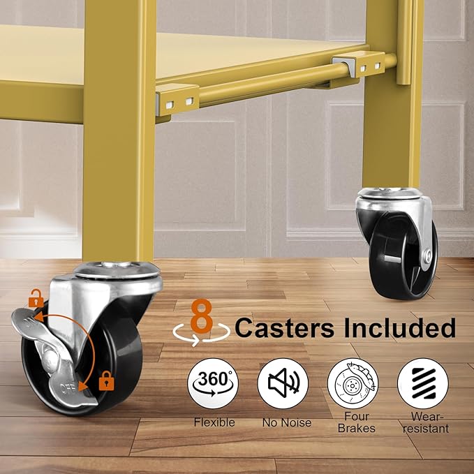 - 【Sturdy & Versatile Shelf】Constructed with premium steel iron, durable and sturdy for long time use. Hold up to 132 lbs per shelf for a total load weight of 792 lbs on wheels. Allowing to be used in garage, ktchen, balcony, basement, pantry room, ect.