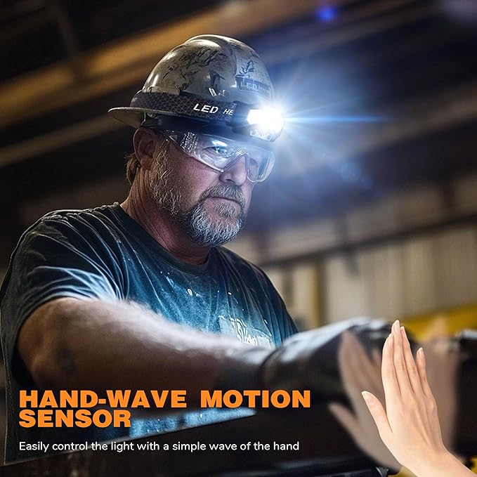 - 【Motion Sensor and Memory Function】The led headlamp utilizes the latest motion sensor technology, you can easily turn the lights ON or OFF by waving your hand, which is more convenient and avoids soiling the headlamp when your hands are dirty. Red headlamp has added a memory function, in any mode, if you hold the key mode button for 2 seconds, you can turn off the light directly, no need to cycle through all modes, and it will automatically restore the last mode you used