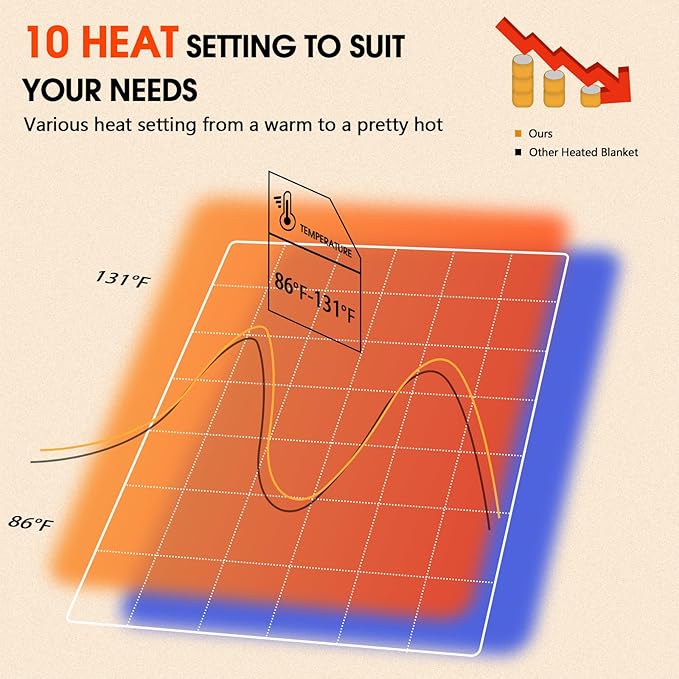 - Safe and Reliable-10 Heating levels for different people needs.and the blanket warmer has the recognized ETL authority certification and FCC certification, and has the overheating protection function. When you are busy with other things and forget to turn off the electric throw blanket ,the overheat protection will automatically trigger the automatic shutdown of the heating, preventing the fire danger, to protect the safety of you and your family