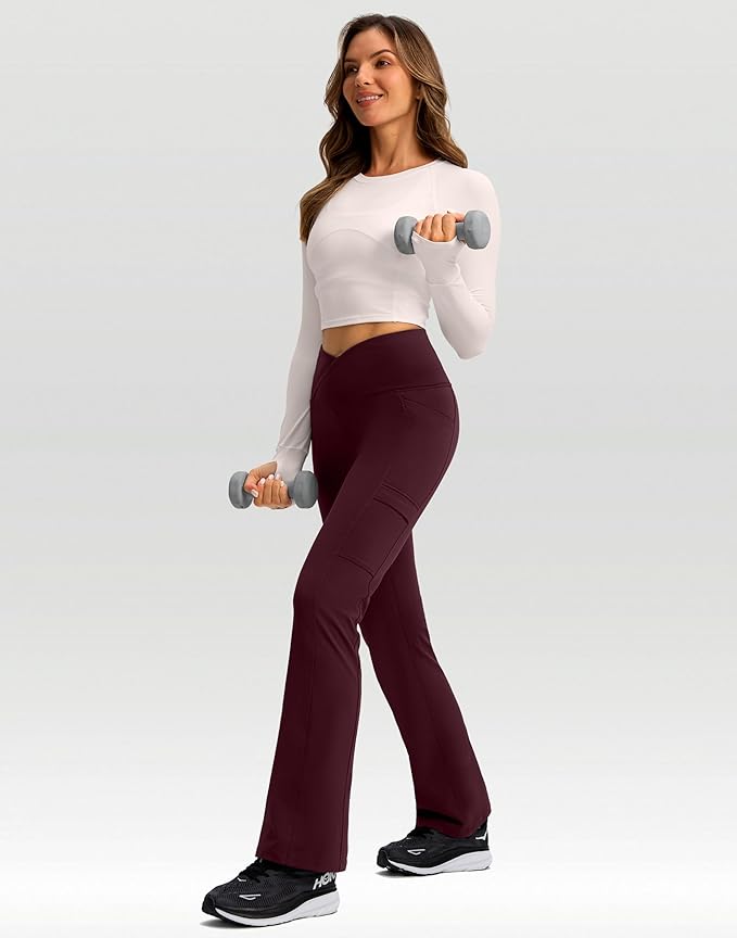• SLIGHTLY FLARE & CROSS-WAIST: 29"/31" Inseam fleece leggings with V crossover waist making it more stylish, flattering. Slightly flared pants shape visually slims the silhouette and fits any body type