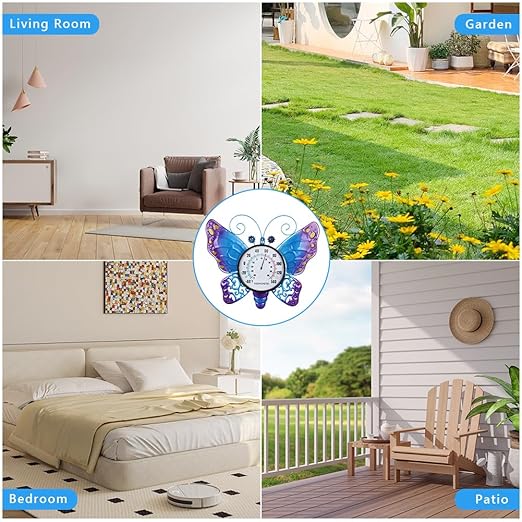 - Easy to Read: The vivid blue butterfly shape and large black dial with large letters make this outdoor thermometer not only clear to read from a distance, but also a cute addition to the wall. Measure about 15 inch in width x 12.4 inch in height