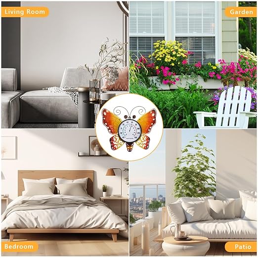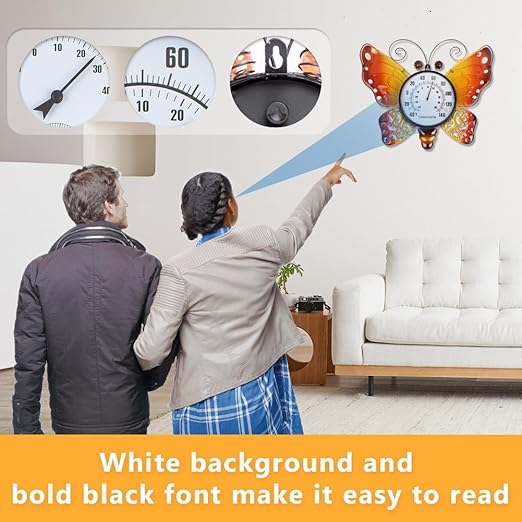 - Easy to Read: The vivid yellow butterfly shape and large black dial with large letters make this outdoor thermometer not only clear to read from a distance, but also a cute addition to the wall. Measure about 15 inch in width x 12.4 inch in height